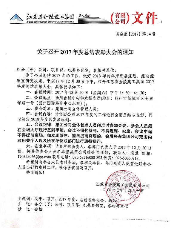 關(guān)于召開2017年度總結(jié)表彰大會相關(guān)會議的通知